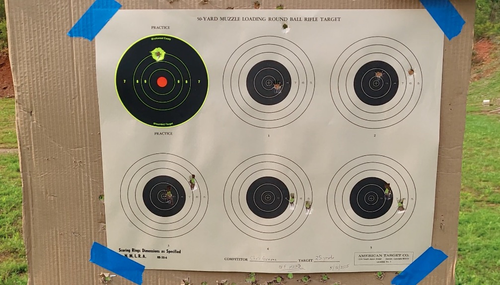 We shot 10 round-balls at the NMLRA six-bull target at 25 yards and changed it up just a bit as everyone shot the same distance to try and avoid shooting each other’s targets. Failed just a bit. At least three had extra holes and one had four in it. Makes it tough on the score keeper shooters and it should not happen as it penalizes the shooter if we cannot figure out which is which.