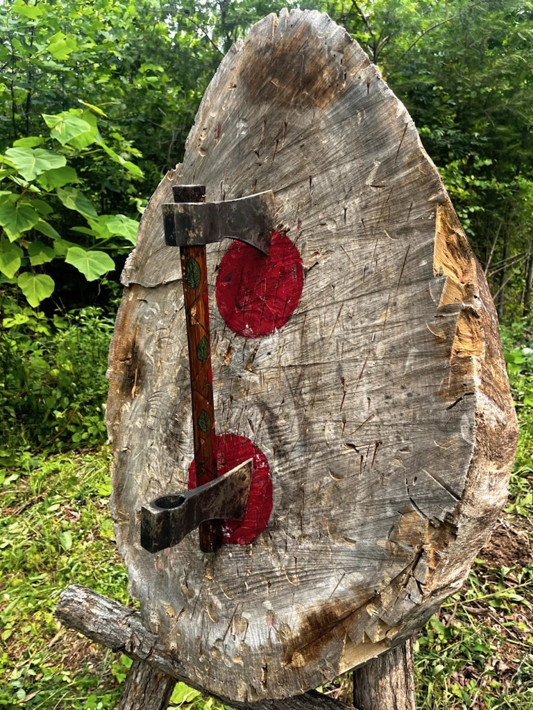 Our knife and hawk back stop got a LOT of hits today as folks seem to really like the opportunity to throw things – and not in anger. Becky C. added an incredible little item to our atmosphere, what looked like about 10 dozen or more homemade oatmeal cookies. What I do know is not many went back home in that container! Thank you, Becky.