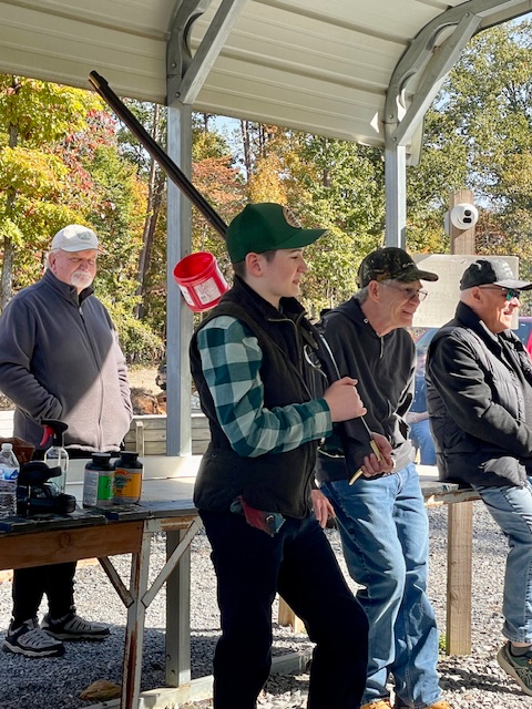 We had 18 shooters this time—8 bench and 10 offhand—with two new faces in the mix. The morning kicked off at a brisk 39 degrees, so we lit up the fire ring to chase away that overnight chill that always sneaks in this time of year. Along with the shooters, we had three spouses, several guests, and four administrators who didn’t shoot (keeping their distance from this rogue band of malodorous miscreants). Our trusty trader, Deercreek Gun Shop, was on hand as usual, and one of our new shooters brought what seemed like half the county to cheer him on. He’s 14 years old, and—just to rub it in—proceeded to outshoot the lot of us with his Woodsrunner .50 caliber. Ah, youth and good eyesight: the most unfair advantage of all.
